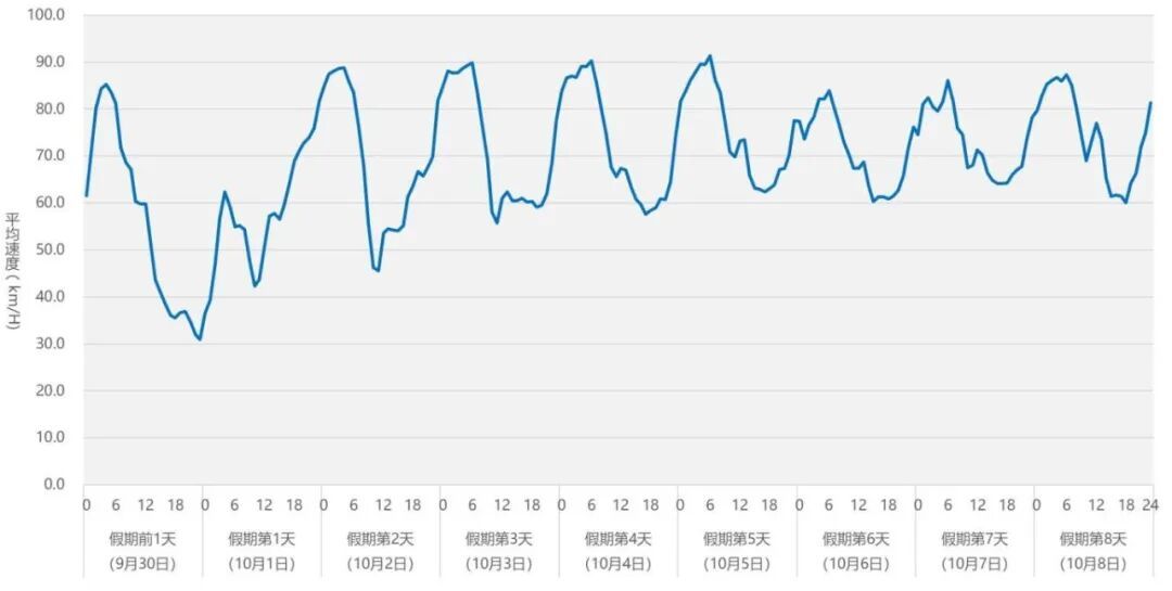 ▲国庆、中秋假期市内高速公路运行速度日变趋势预测。