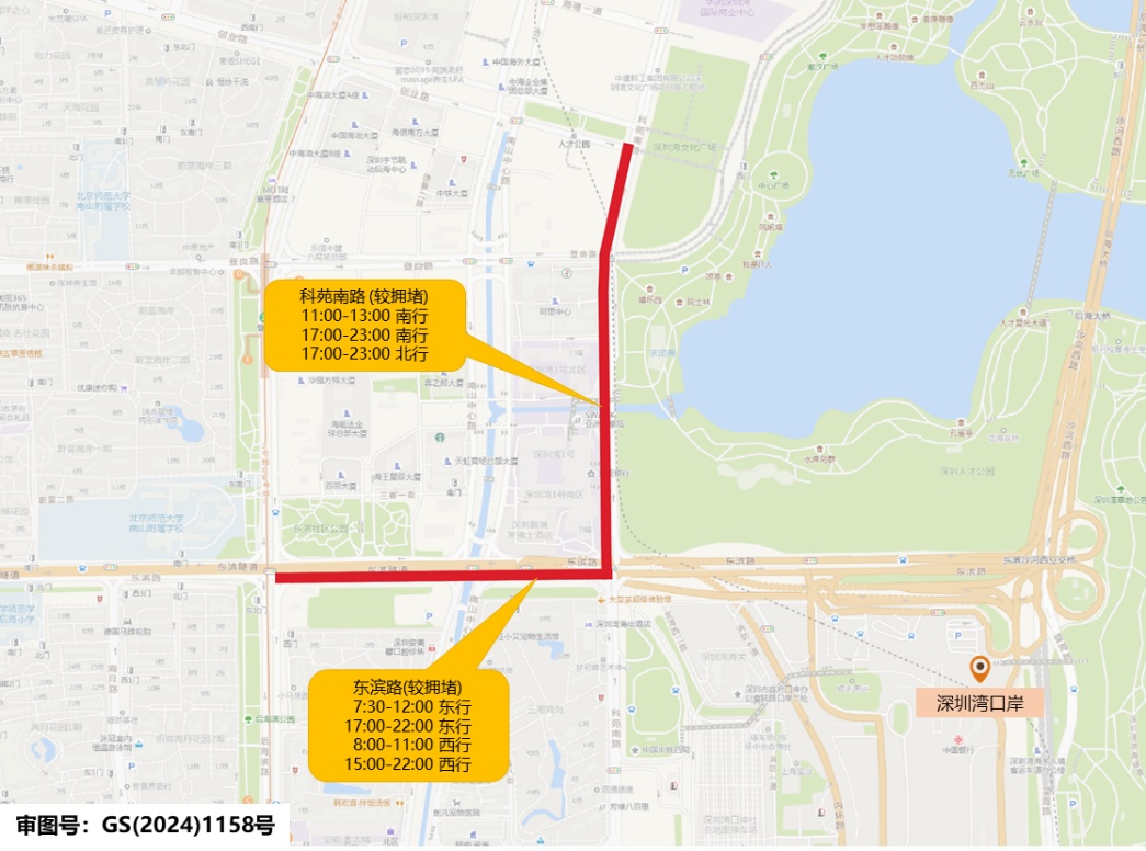 在市内出行方面,预计假日期间,全市路网整体交通畅行度为74%,处于基本畅通状态,出行高峰时段为9:30-11:00、15:00-19:00。假期期间,罗湖区新园路、和平路、鹏兴路,宝安区内环路,盐田区环梅路等部分路段交通运行压力较为显著。