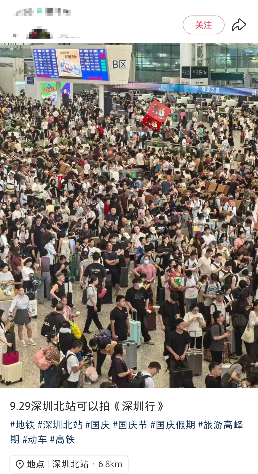 深圳铁路客流最高峰预计出现在10月1日(假期第一天),其中深圳北站单日到发旅客超56万人次,出行高峰期深圳北站周边拥堵路段主要分布在玉龙路、留仙大道、民旺路等。